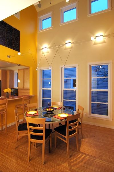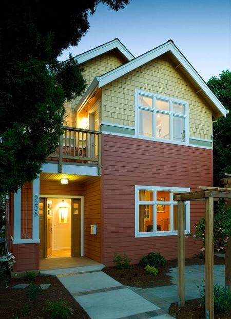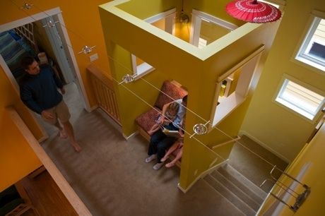 Этот трехэтажный дом расположен в пригороде Сиэтла Гринлейк в густонаселенном квартале жилых домов, рассчитанных на две или три семьи. Проект, о котором идет речь, предусматривал замену небольшого старого дома, который не мог быть сохранен - таким образом, это проект точечной застройки. Уровень парадного входа позволяет легко вносить велосипеды и коляски внутрь помещения и из него.