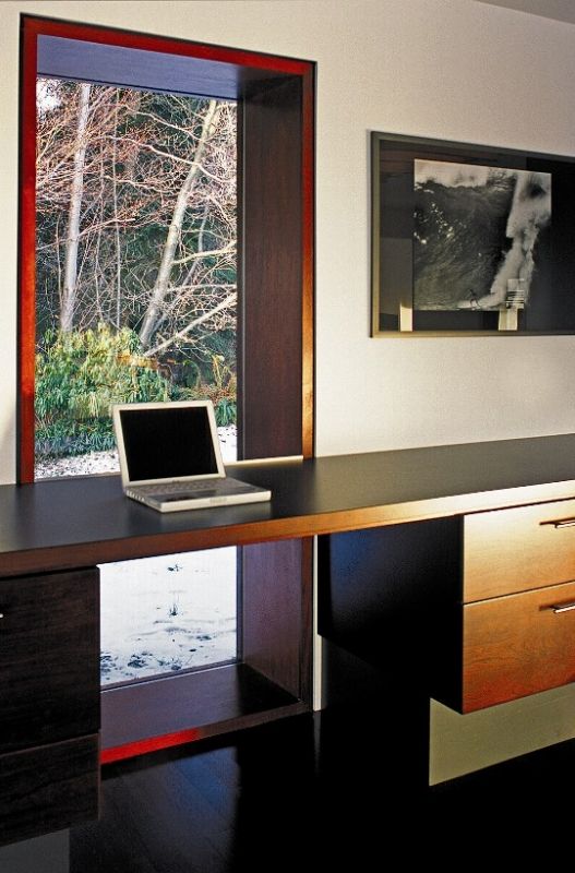 Детали столярных изделий повышают удобство, но ничем, кроме изящного стиля, не отличаются. Двери всех шкафов открываются с помощью сенсорного управления, а выдвижные полки сделали перенос посуды из горячей духовки безопасным и легким. Кран для мытья кухонной посуды установлен у плиты, поэтому вода всегда рядом. Ящики полностью выдвигаются, как и другая мебель делают доступ ко всему легким и простым. Мюррей может собственноручно сделать качественное эспрессо на оборудовании, встроенном в рабочую поверхность.