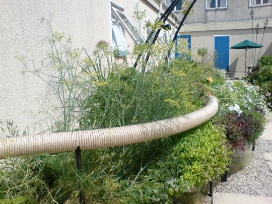 Поскольку больничное отделение им. Гренвиль находится во временной постройки, сад проектировался с тем ожиданиям, что большинство его элементов можно будет сохранить, когда придет время переезжать