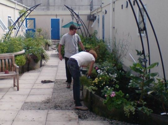 Перед тем, как старый, мрачный, неустроенный пустой внутренний двор больничного отделения им. Гренвиль Королевского госпиталя в Труро, Корнуолл, Соединенное Королевство, был превращен в современный, удобный для людей с различными функциональными возможностями, он был сильно захламлем персоналом больницы который использовал его как место для курения. Проект реконструкции предусматривал озеленение, обустройство пространства и ландшафта для создания яркой, мотивирующей, лечебной и восстановительной среды для пациентов, врачей, персонала и других посетителей. В тесном сотрудничестве со специалистами в области реабилитации и с учетом пожеланий посетителей, врачей и вспомогательного персонала был спроектирован сад. В результате появился инклюзивное пространство, удобное для людей с различными функциональными возможностями. Он используется для реабилитации в рамках клинической программы больничного отделения им. Гренвиль (для послеоперационного ухода за пожилыми людьми) и для отдыха всего больничного сообщества.